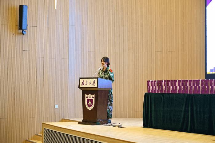 代表李欣怡同学,结合十几天的军训经历,分享了自己正式成为南大新传人的收获和体悟。同时,她也无比感谢在过去一年的学习生活中,国产直播